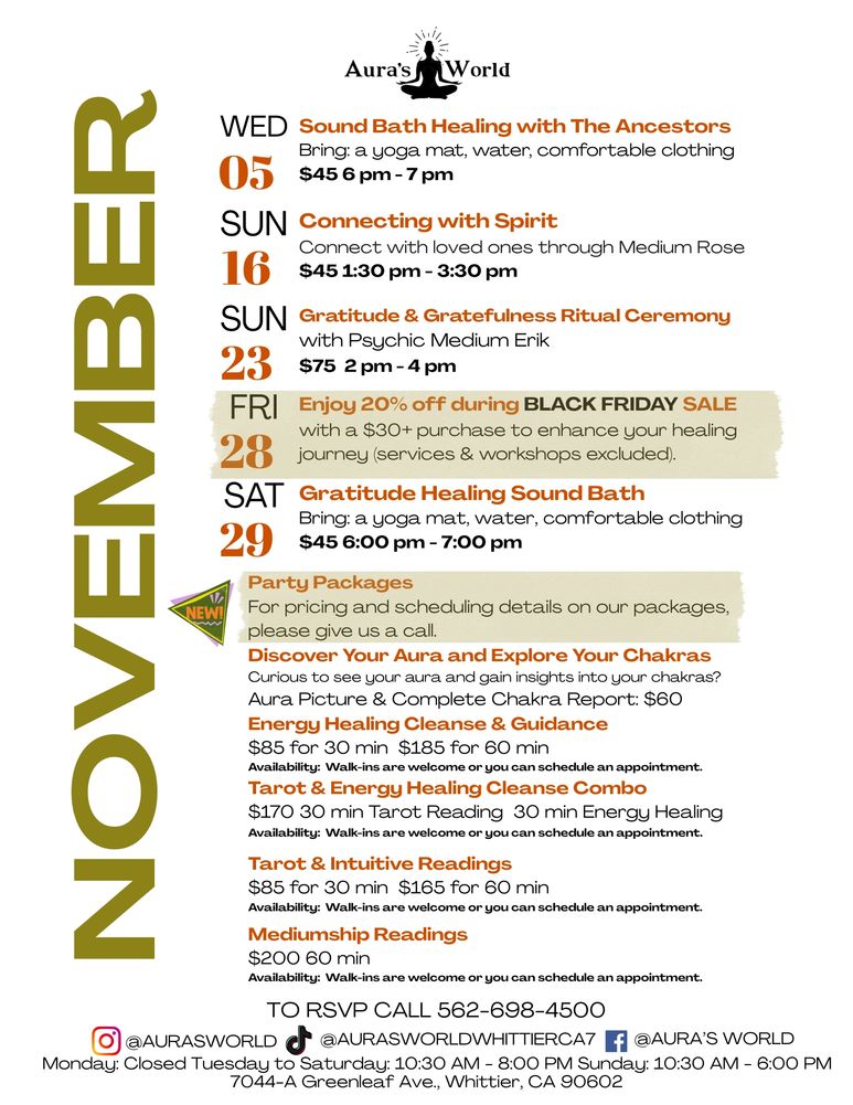 Book your experience today! Contact Aura's World at 562-698-4500 or visit us at 7044 Greenleaf Ave, Whittier, CA 90602.
